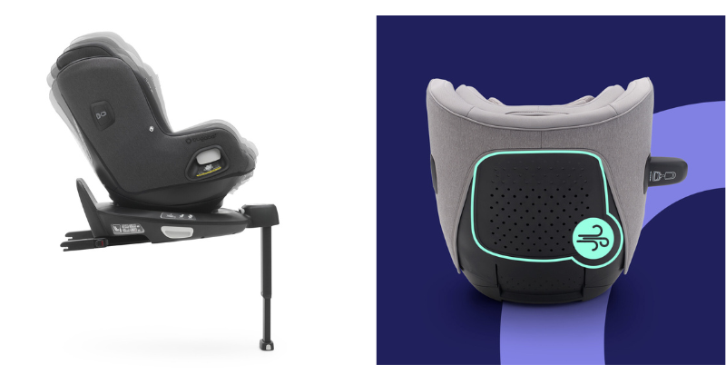 - Pełny obrót 360° (z bazą Isofix 360 – dostępna osobno) – łatwe wkładanie i wyjmowanie dziecka