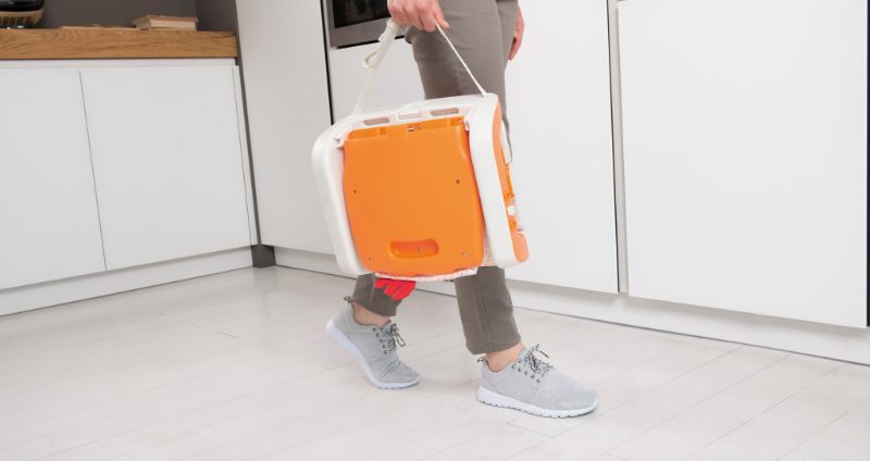 - Kompaktowe składanie – zajmuje mało miejsca i stoi samodzielnie po złożeniu,