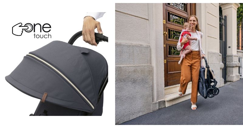 - Automatyczne składanie OneTouch – wystarczy jeden ruch, by wózek złożył się samoczynnie