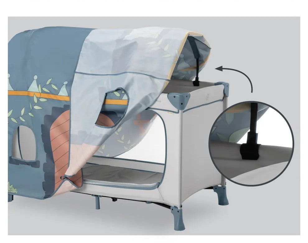 Namiot do zabawy Hauck zmienia zwykłe łóżeczko turystyczne w magiczną przestrzeń pełną wyobraźni. Dzięki idealnemu dopasowaniu do łóżeczek o powierzchni spania do 60 cm, w kilka chwil powstaje przytulny domek lub mały „pałac”, które zachęca dziecko do kreatywnej zabawy. Jasne kolory i urocze detale tworzą atmosferę, w której maluch poczuje się bezpiecznie i swobodnie. Namiot można łatwo założyć i zdjąć, co sprawia, że doskonale sprawdza się zarówno w domu, jak i podczas wyjazdów.