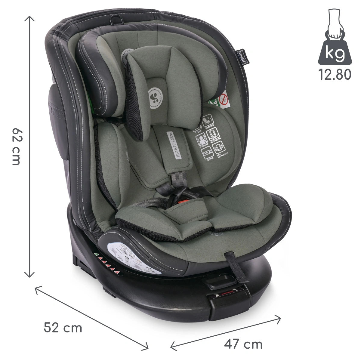 Lorelli Estate I-Size to fotelik, który dostosowuje się do potrzeb Twojego dziecka na każdym etapie rozwoju. Obejmuje zakres od 40 do 150 cm wzrostu i posiada obracaną bazę 360° dla łatwej obsługi. Zastosowanie najnowszych norm bezpieczeństwa oraz komfortowe materiały sprawiają, że to świetna inwestycja w bezpieczne podróże.