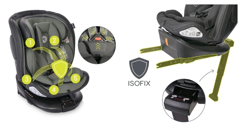 Mechanizm 360° to wygoda dla rodziców – łatwo zmienisz kierunek jazdy bez konieczności demontażu. ISOFIX i noga podporowa zapewniają szybki, solidny montaż i zwiększają bezpieczeństwo na drodze.