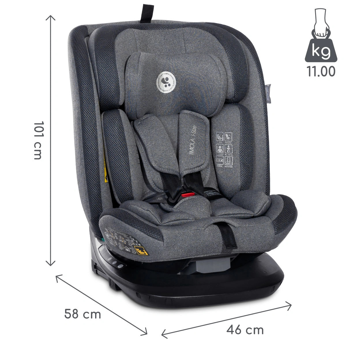 Fotelik samochodowy Lorelli Imola I-Size to nowoczesne rozwiązanie dla dzieci od 40 do 150 cm wzrostu. Został zaprojektowany z myślą o wieloletnim użytkowaniu – od narodzin aż do około 12. roku życia. Obrotowy mechanizm 360° zapewnia łatwe wsiadanie i wysiadanie, a zgodność z normą R129/03 (i-Size) potwierdza najwyższy poziom bezpieczeństwa i wygody.
