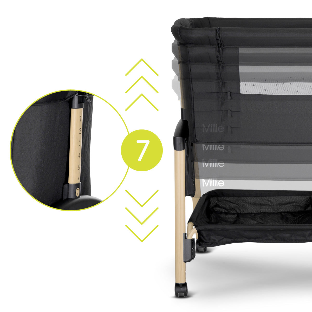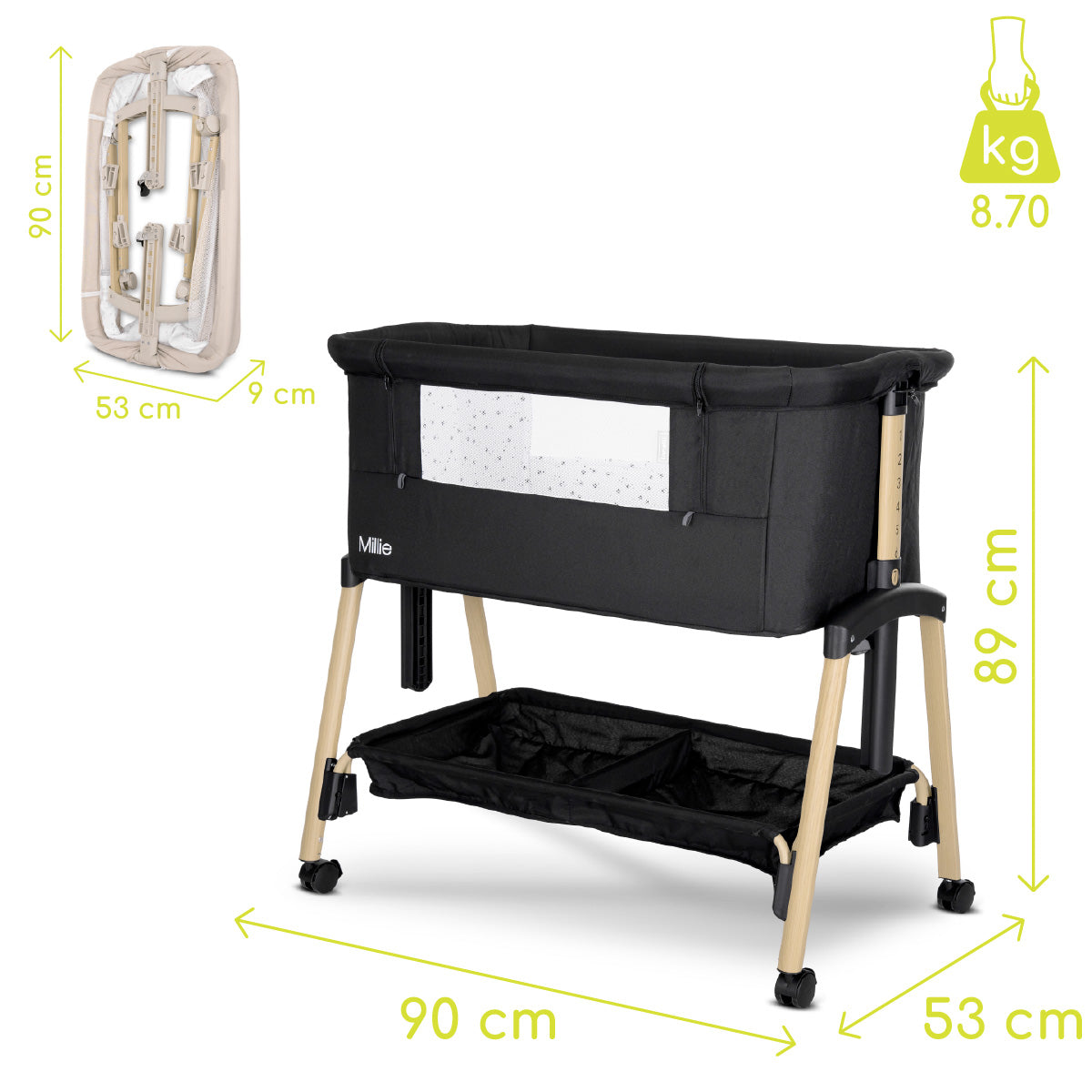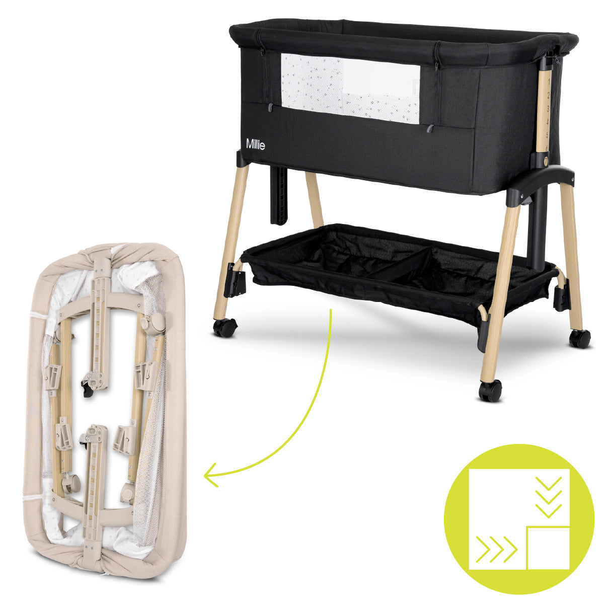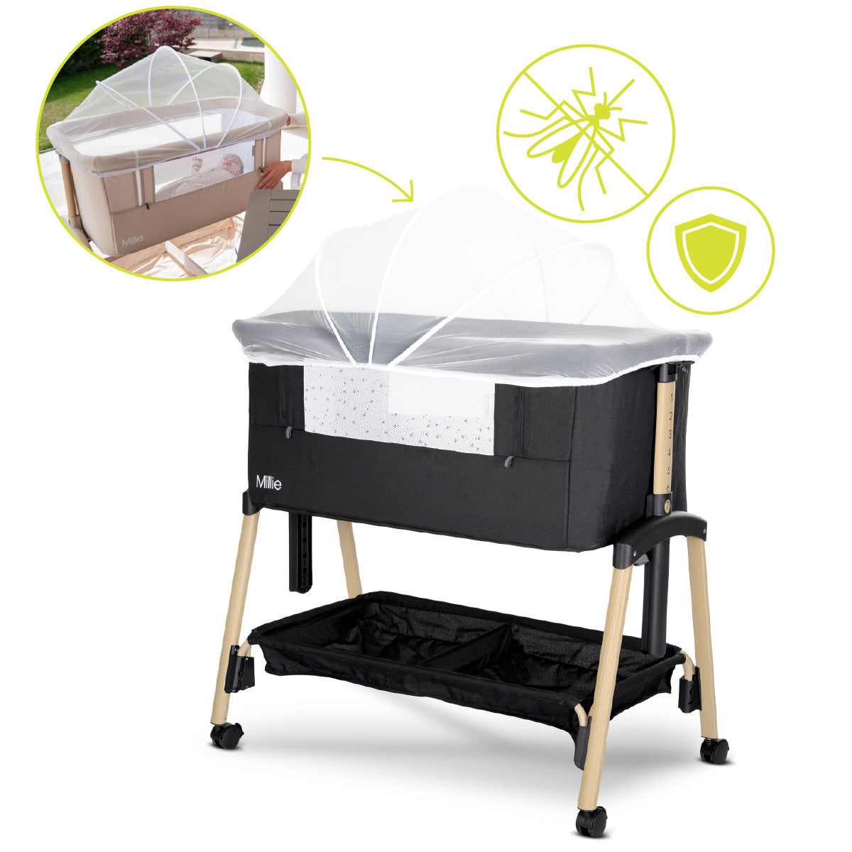 Lorelli Millie to łóżeczko dla niemowląt i kołyska 2w1, które łączy funkcjonalność, komfort i bezpieczeństwo. Przeznaczone dla dzieci od 0 do 6 miesięcy (do 9 kg), sprawdzi się w domu, podczas podróży czy u dziadków. Wyposażone w 7-stopniową regulację wysokości materaca, boczne otwarcie na zamek, przewiewne siateczkowe ścianki i solidną konstrukcję, zapewnia bezpieczne miejsce do snu i zabawy. Funkcja kołyski ułatwia usypianie malucha, a kompaktowe składanie i torba transportowa umożliwiają wygodne przenoszenie i przechowywanie.