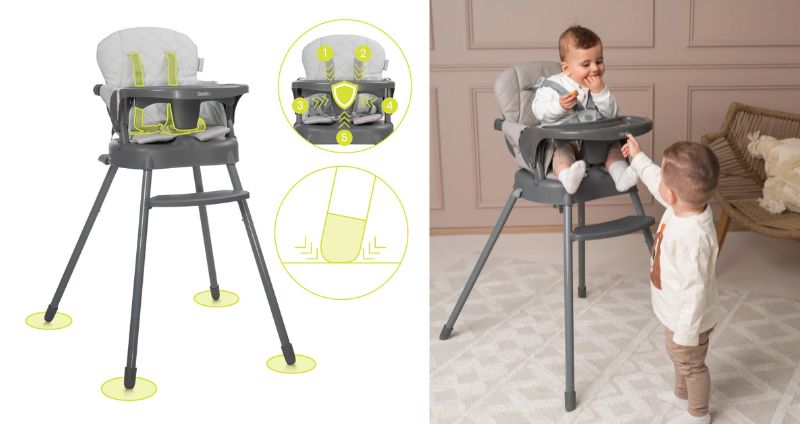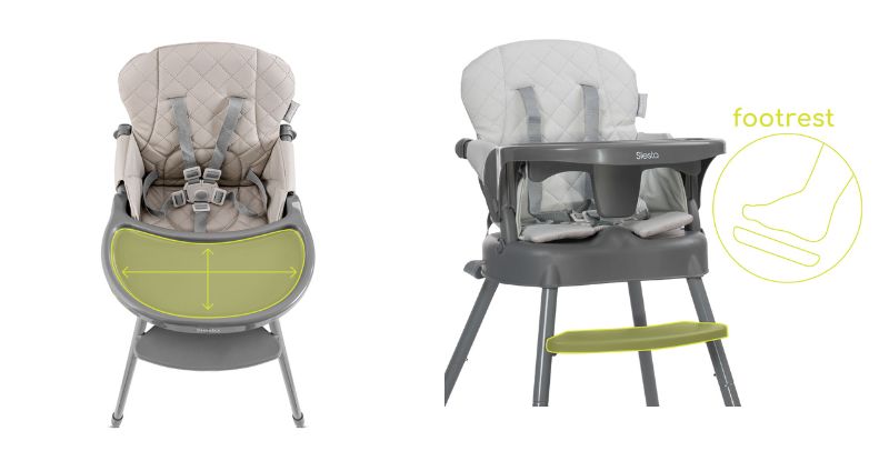 Krzesełko Siesta 3w1 to połączenie nowoczesnego designu i wielofunkcyjności, które pozwala dopasować się do potrzeb dziecka w różnym wieku. Dzięki trzem trybom użytkowania, służy jako wysokie