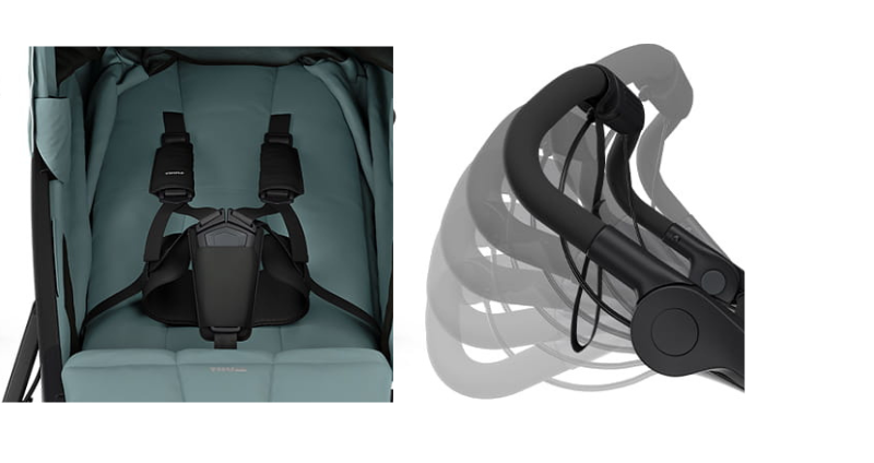 - Regulowana rączka – dopasowanie do wzrostu rodzica